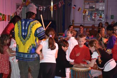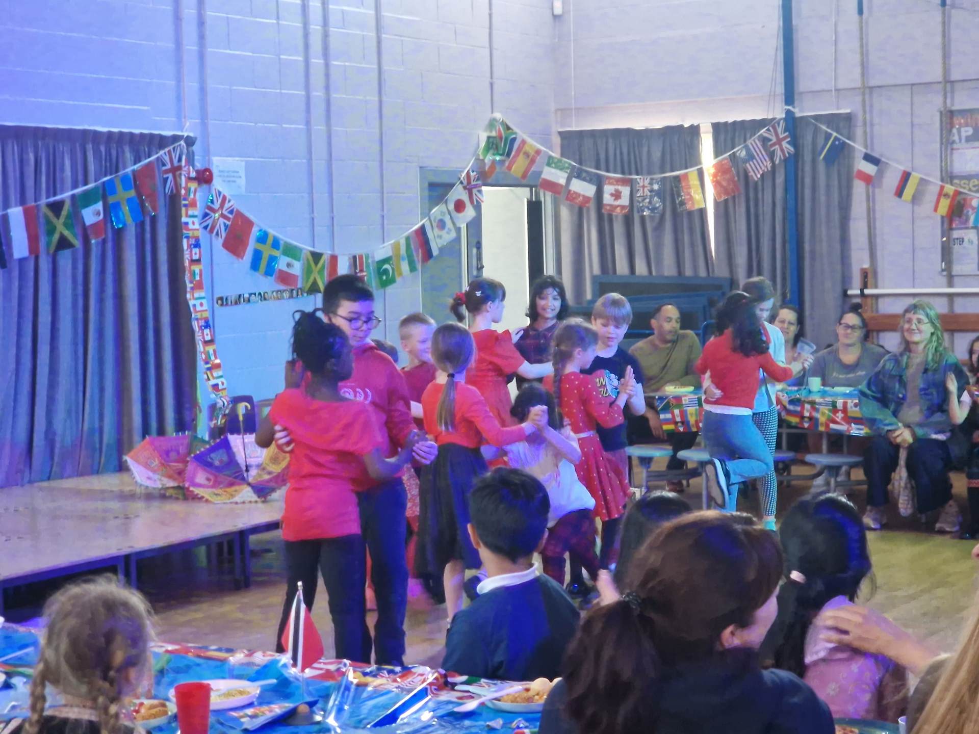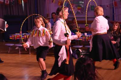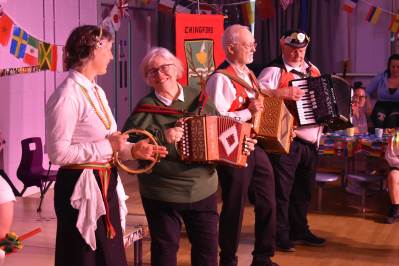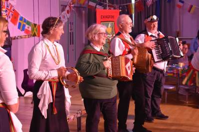 What an evening! Those that attended last Friday to come together and celebrate our international links had a brilliant time. The savoury food that everyone generously contributed looked, smelt and tasted amazing! There really wasn’t much left at all before the entertainment began! The cake and dessert table was equally wonderful and extremely tempting! The hall and dining room were beautifully decorated with flags and tablecloths from across the world.