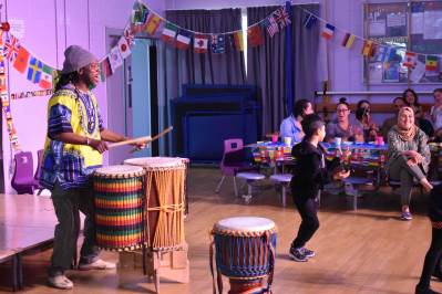 Moving away from dance, we were next entertained by an amazing African Drummer, Seneke from Mbilla Arts who are based at The Crate - he is a Guinness World record holder. He had everyone joining in, up on their feet and dancing. Some children even joining him on the drums in a joyous, riotous display of drumming.African Drumming - INTERNATIONAL EVENING 2026