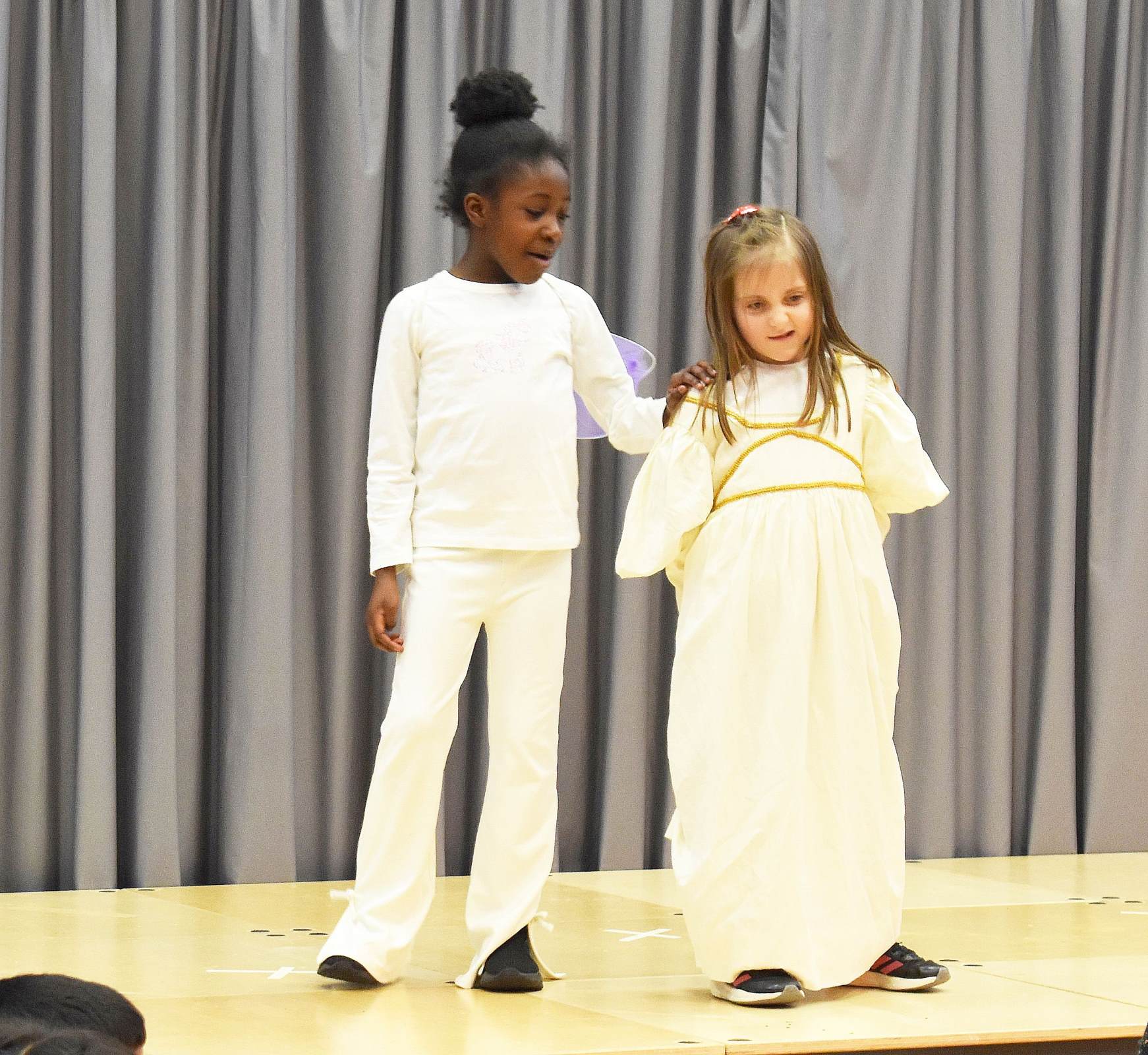 The children shared a story of an Angel who had no wings and how along her journey to Bethlehem she encountered a lamb, donkey and dove who she helped when they got themselves into difficulty. And for her kindness she earned her wings when she reached Bethlehem and met Mary, Joseph and baby Jesus.