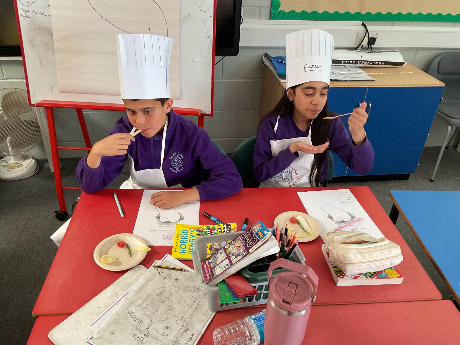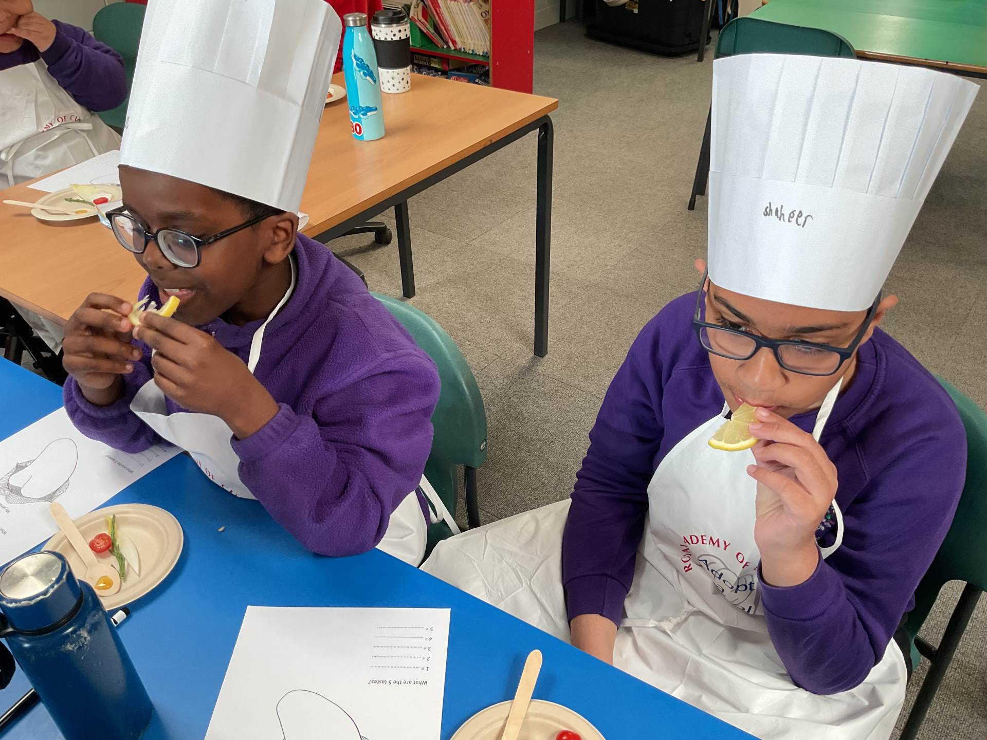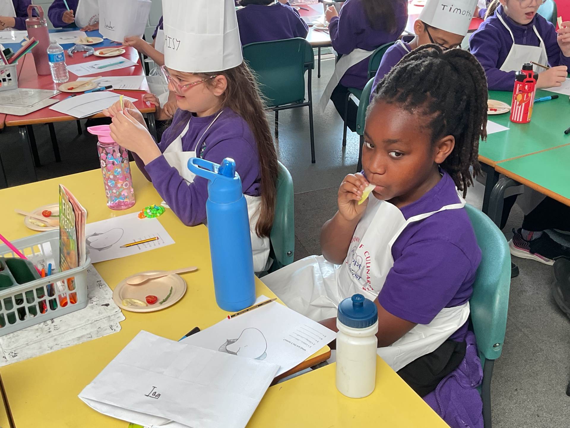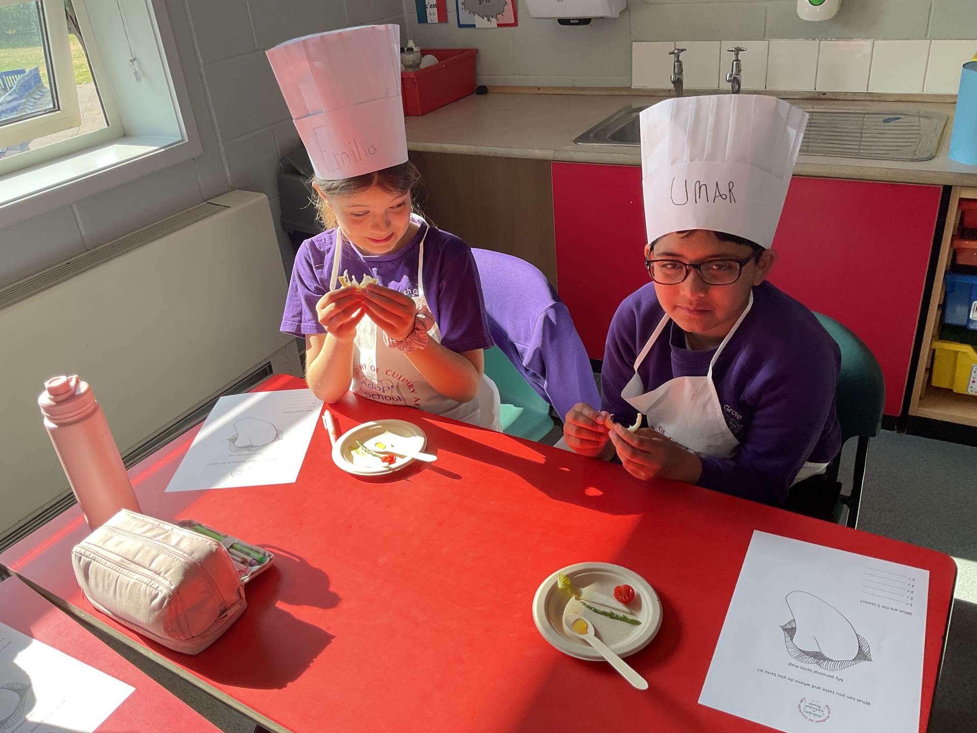 To finish, the children enjoyed a tasting session where they were encouraged to try a range of foods. They used their senses to explore flavours, describing what they tasted and where they noticed the flavours most on their tongues. The children proudly wore their hats and aprons and are already looking forward to the rest of the sessions.